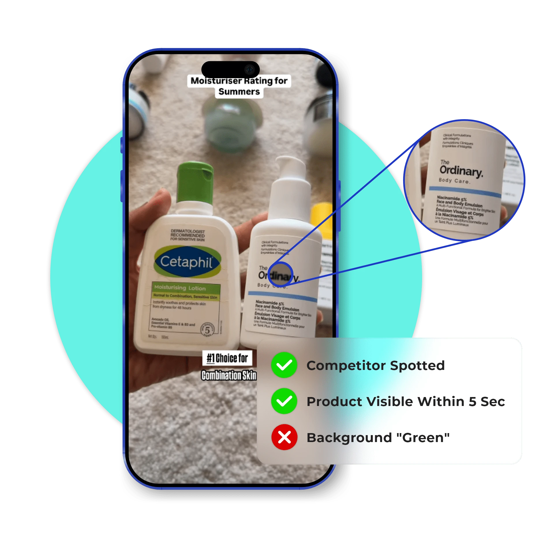 Ensure your brand's exclusivity. Our AI meticulously scans videos to detect and flag any mentions or visual appearances of competitor brands, safeguarding your campaign's integrity